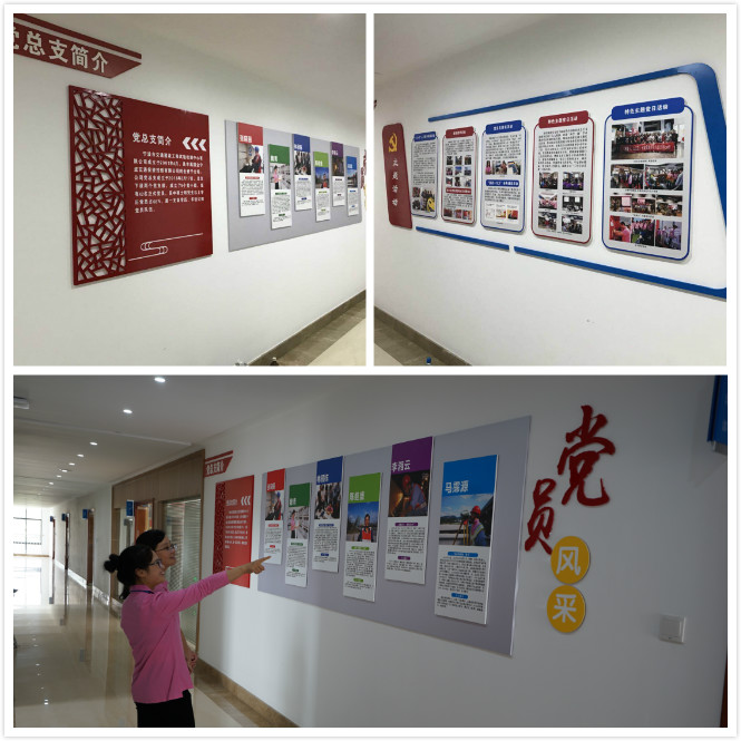 將走廊的“空白墻”設(shè)計成企業(yè)黨建文化長廊。整個長廊以“建陣地、強組織、展分采、聚人心”為主線,以鮮艷的紅色為主色調(diào),以黨和國家標志性圖案為背景,以圖文并茂、喜聞樂見的表現(xiàn)形式對十九大精神、兩學(xué)一做、黨員風(fēng)采、主題活動和廉潔宣傳等五方面內(nèi)容進行了上墻,其中“黨員風(fēng)采”上的六名年度優(yōu)秀黨員的先進事跡,成為了大家駐足觀看的焦點,較好的促成了內(nèi)部形成“人人爭當(dāng)先進,處處彰顯黨性”的良好氛圍。